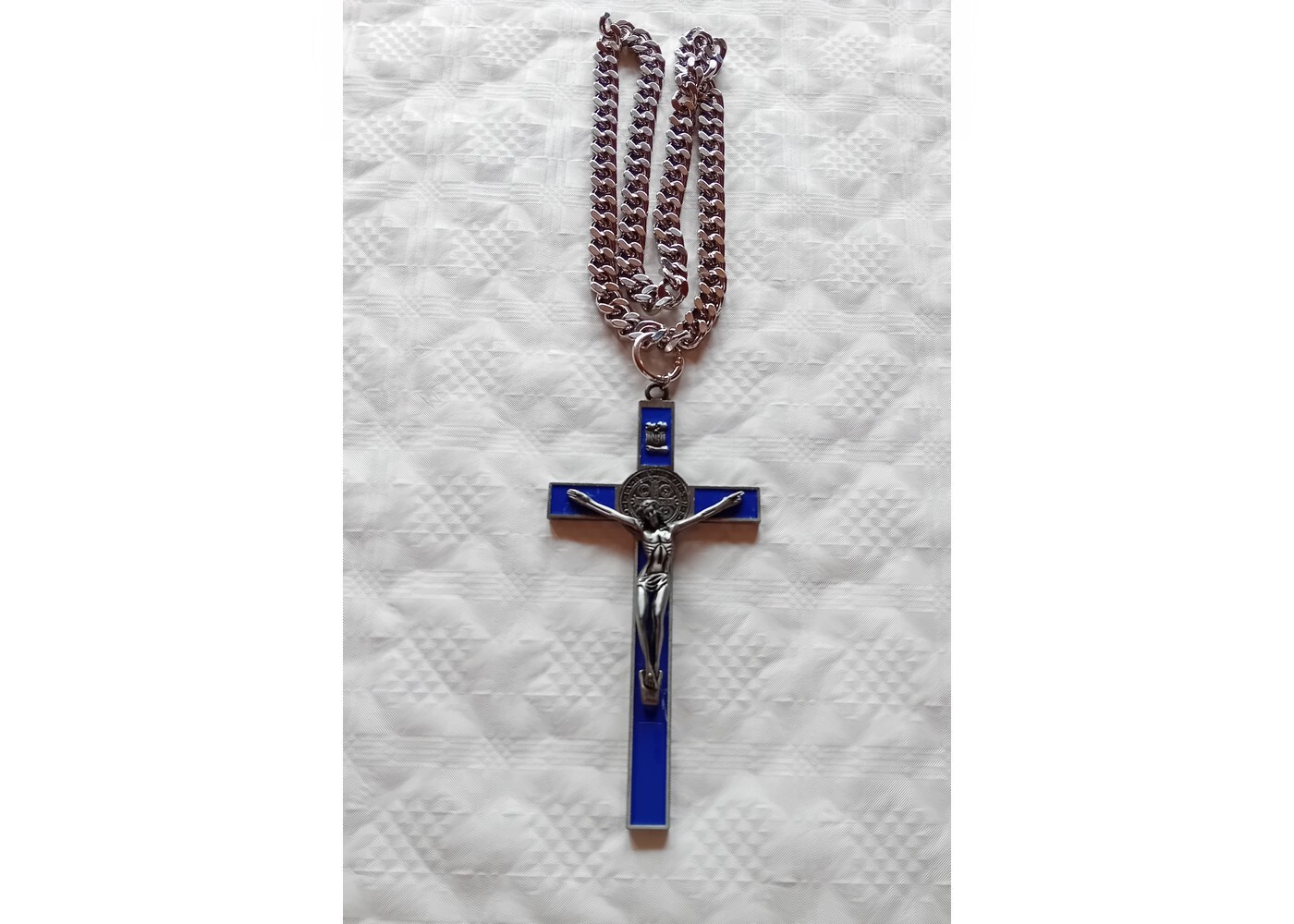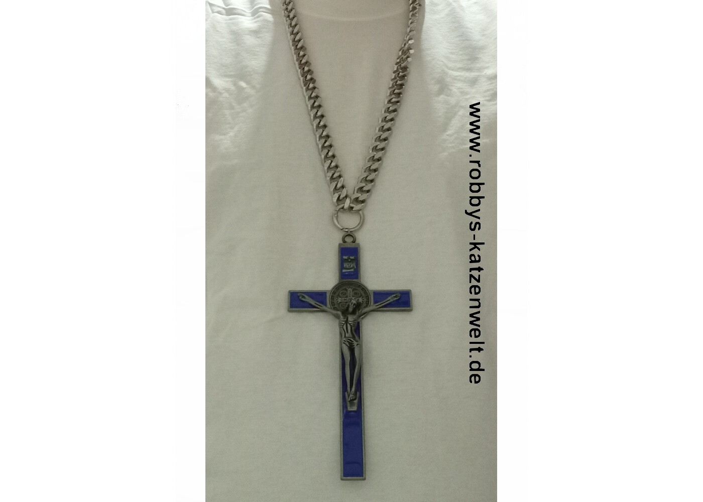 Edelstahl Halskette 80 cm mit 20 cm Kreuz blau