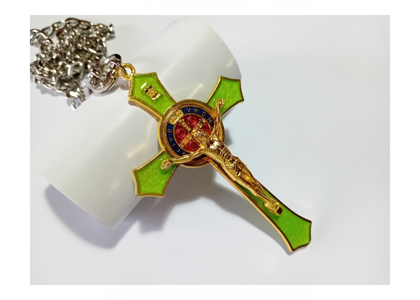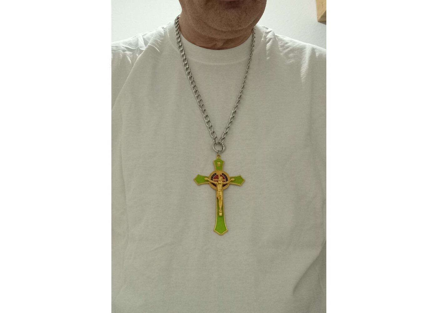 Edelstahl Halskette mit 12cm Kreuz Grün