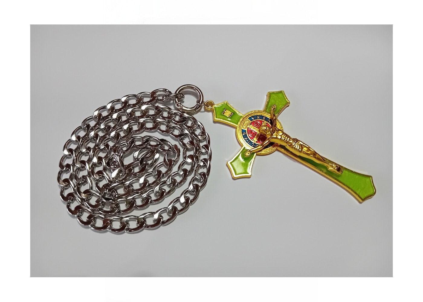10cm Breite und 70cm lange Edelstahl Halskette mit einen 12cm großen Kreuz mit grüner Emaille (Bitte die Bilder anschauen) zusätzlich gibt es noch ein Armband in 20cm länge dazu. Ersatz-Verschlusss ist natürlich auch dabei.